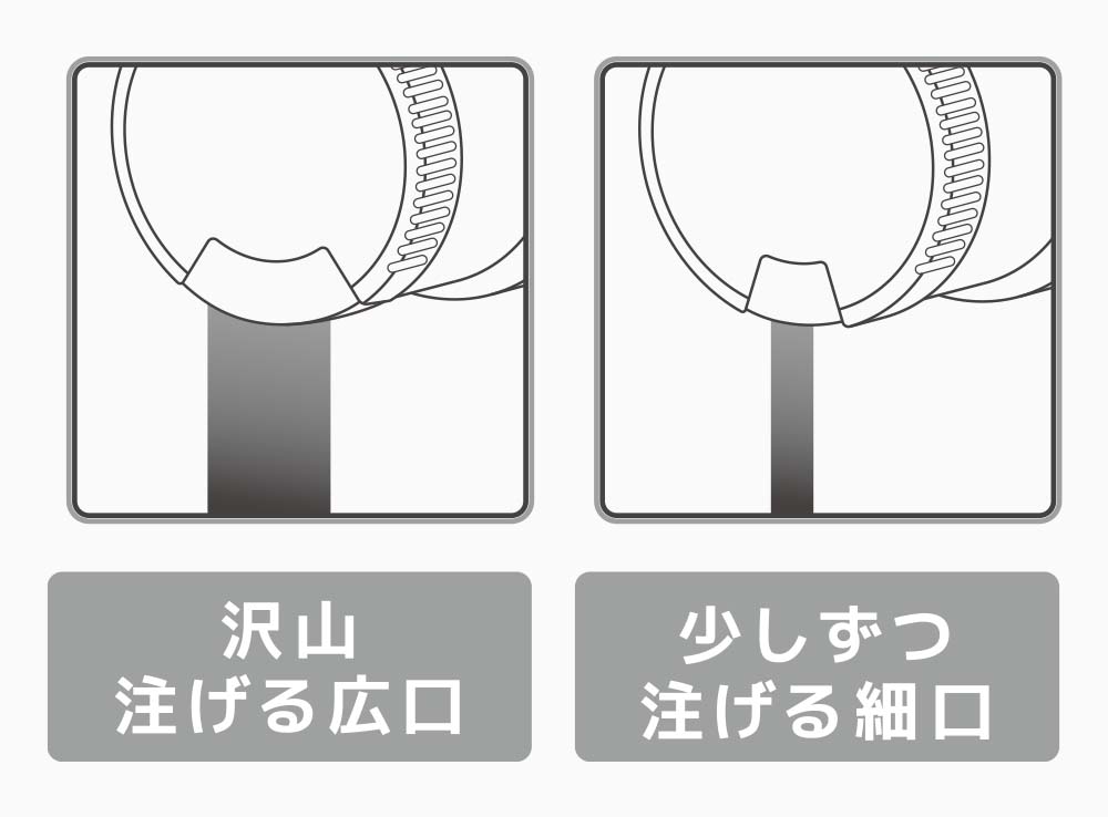 沢山注げる広口と、少しずつ注げる細口。用途に応じて使い分けが可能です。
