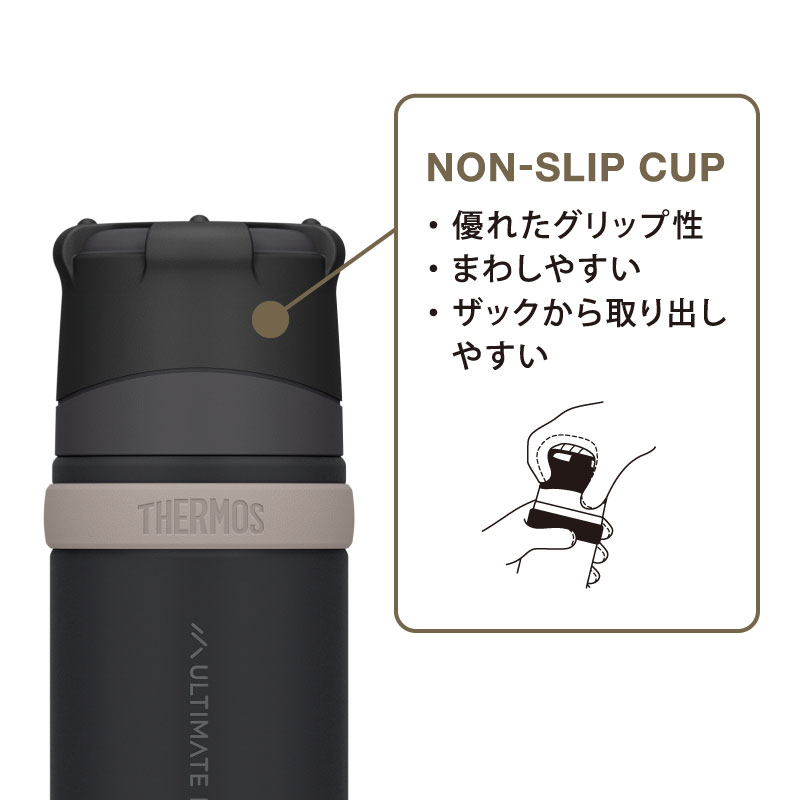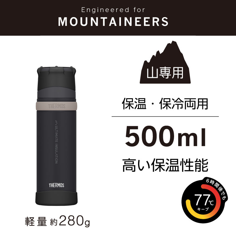 山専用ボトルとは、平地では考えられない厳しい条件を想定して開発されたサーモスのステンレスボトルです。口径のサイズから形状、素材に至るすべての構造に、登山者のための意図があります。山へ挑戦するすべての登山者の助けとなるボトルです。