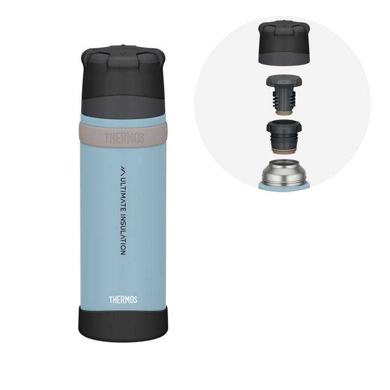山専用ボトルとは、平地では考えられない厳しい条件を想定して開発されたサーモスのステンレスボトルです。口径のサイズから形状、素材に至るすべての構造に、登山者のための意図があります。山へ挑戦するすべての登山者の助けとなるボトルです。