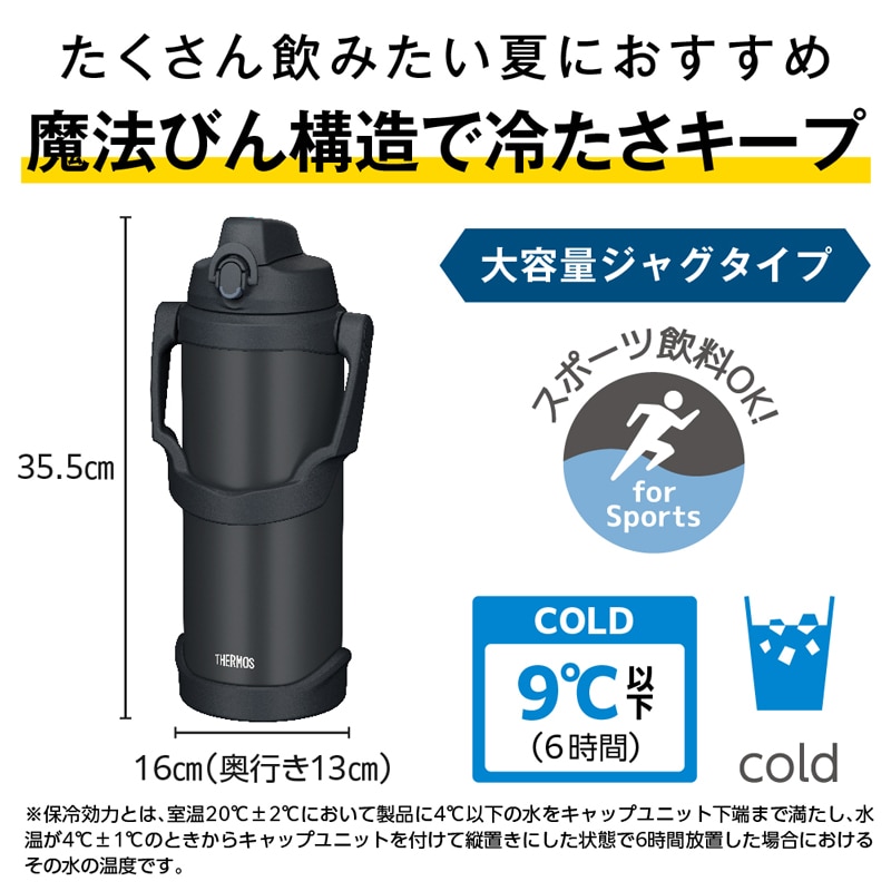 大容量のスポーツジャグは、真空断熱構造だから長時間のスポーツシーンでも冷たさキープ