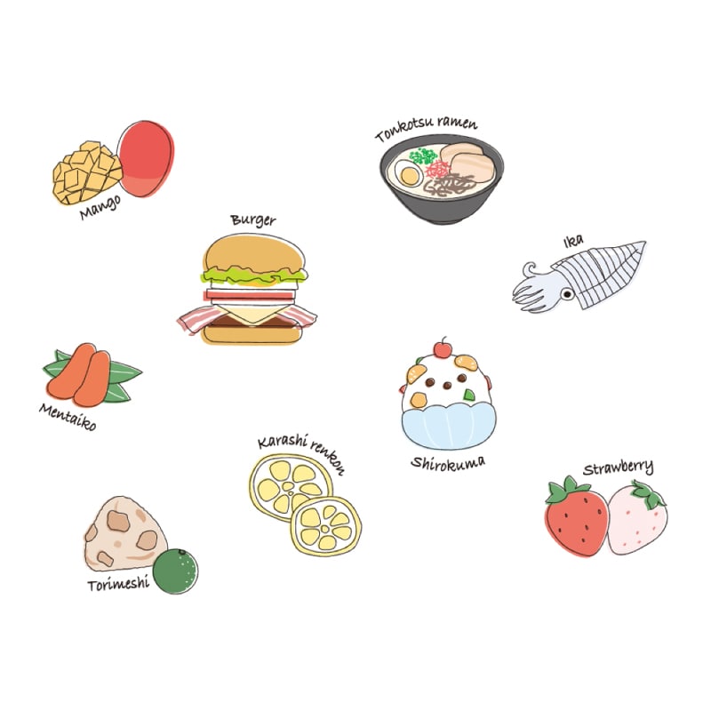 九州の食べ物といえば!なモチーフをデザインしました。