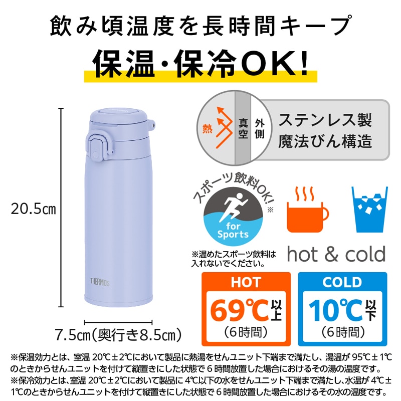 • ステンレス製魔法びん構造だから高い保温・保冷力