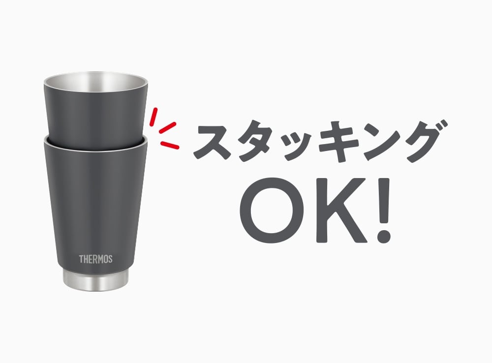 スタッキングできるのでコンパクトに収納できます。また、400mlサイズともスタッキングが可能です。