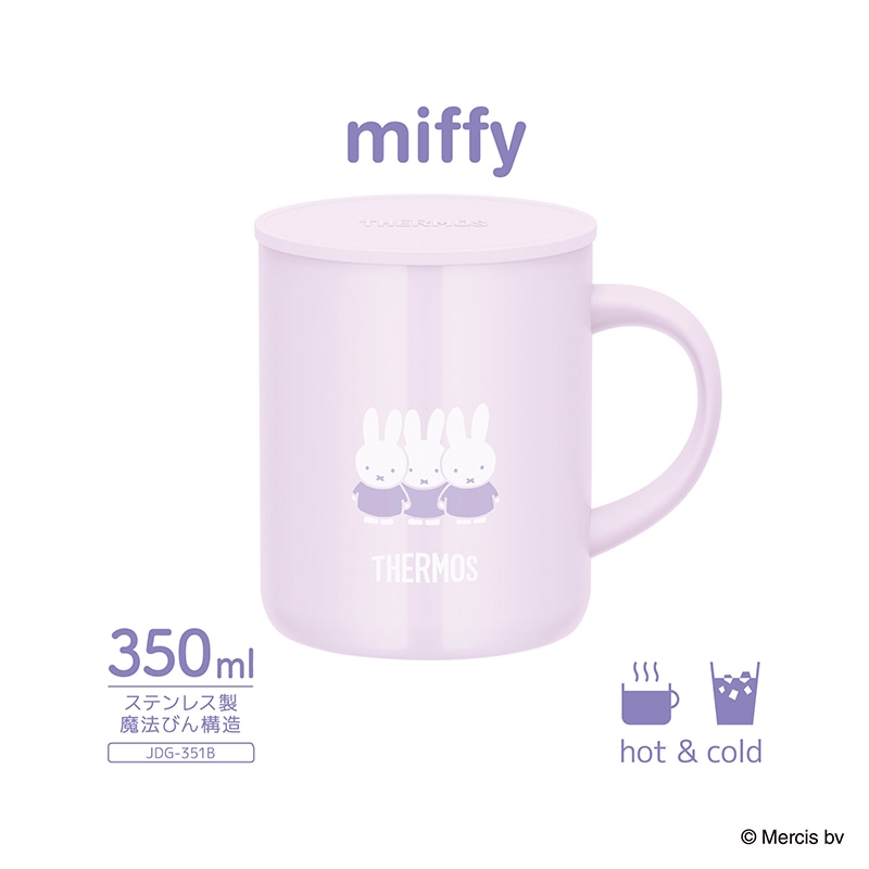 ミッフィーをあしらったかわいいマグカップ。ステンレス製魔法びん構造なので、冷たさ・温かさ長持ち。