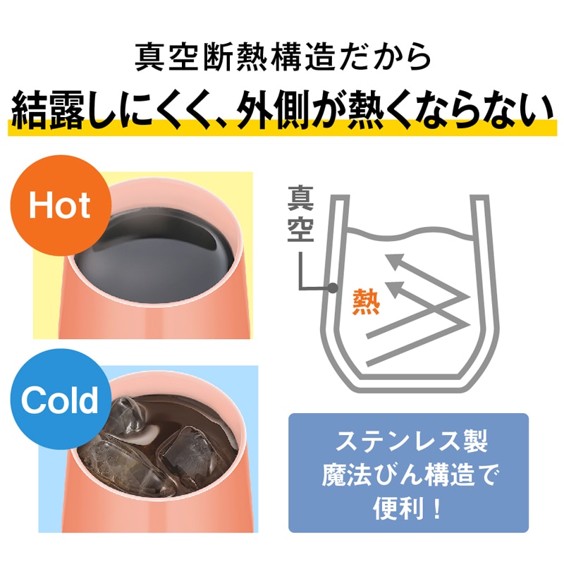ステンレス製魔法びん構造だから飲み頃温度をキープ