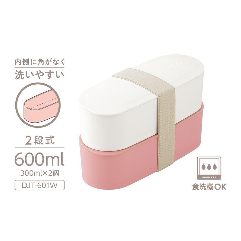 丸みのあるデザインの2段式お弁当箱。内側に角がなく洗いやすい!