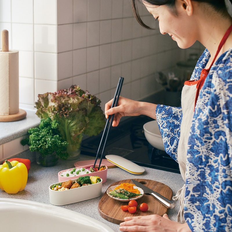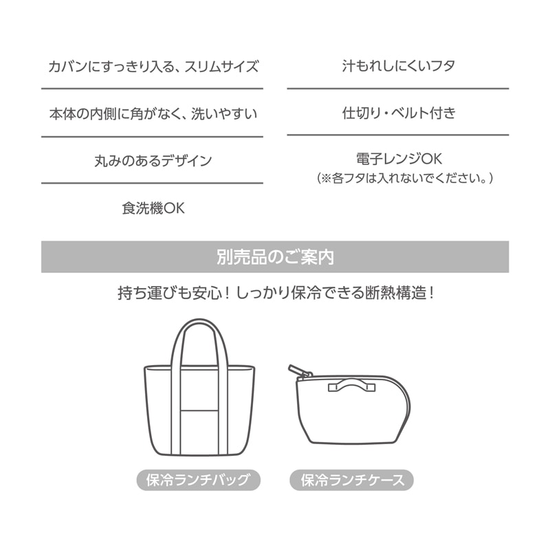 カバンにすっきり入るスリムサイズ!2段式のお弁当箱、食洗機対応。
