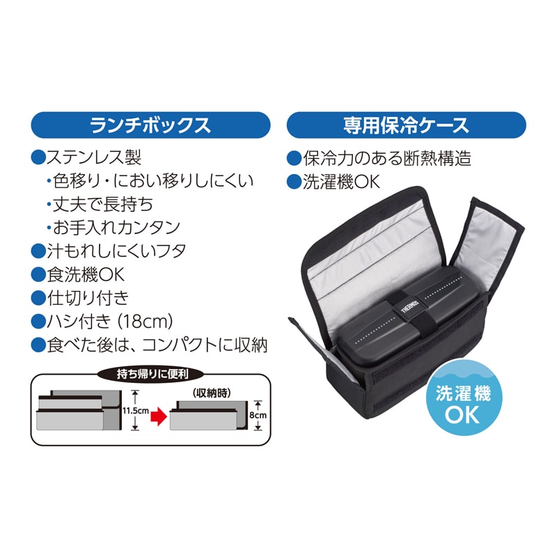 色移り、におい移りしにくいステンレス製。保冷力のある断熱構造のケース付き。食洗機対応でお手入れも簡単です。