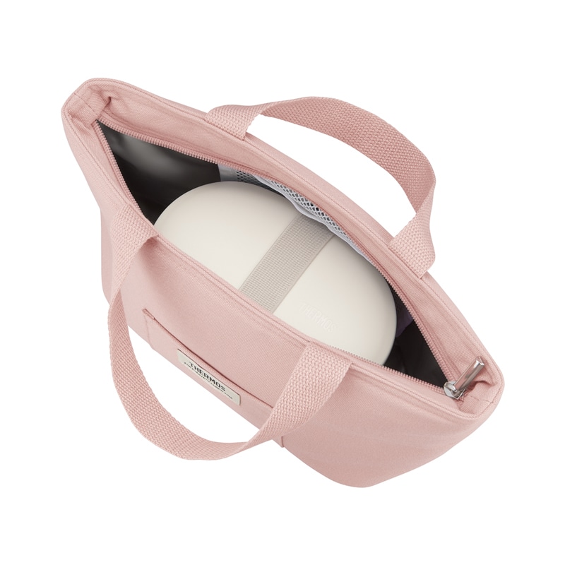 トートバッグタイプの保冷ランチバッグ。内側には保冷剤がセットできるメッシュポケット付き。2サイズ展開。