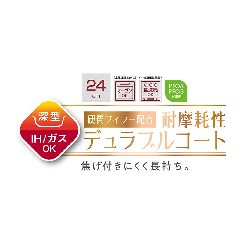 IH・ガス火両方OK!耐久性コーティングで耐摩耗性の高さと焦げつきにくさが特長の取っ手のとれるフライパン。 取っ手を外してそのままテーブルにも。4サイズ。