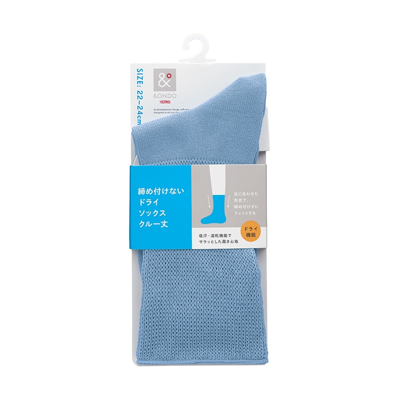 (3/6発売)締め付けないドライソックス クルー丈 22-24cm ブルー