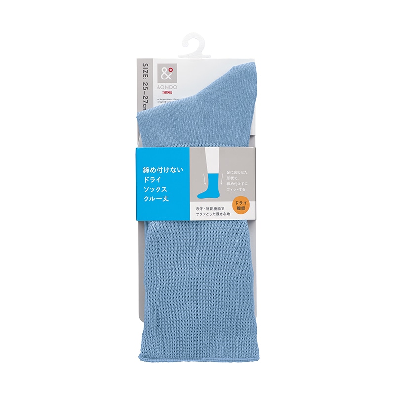 (3/6発売)締め付けないドライソックス クルー丈 25-27cm ブルー