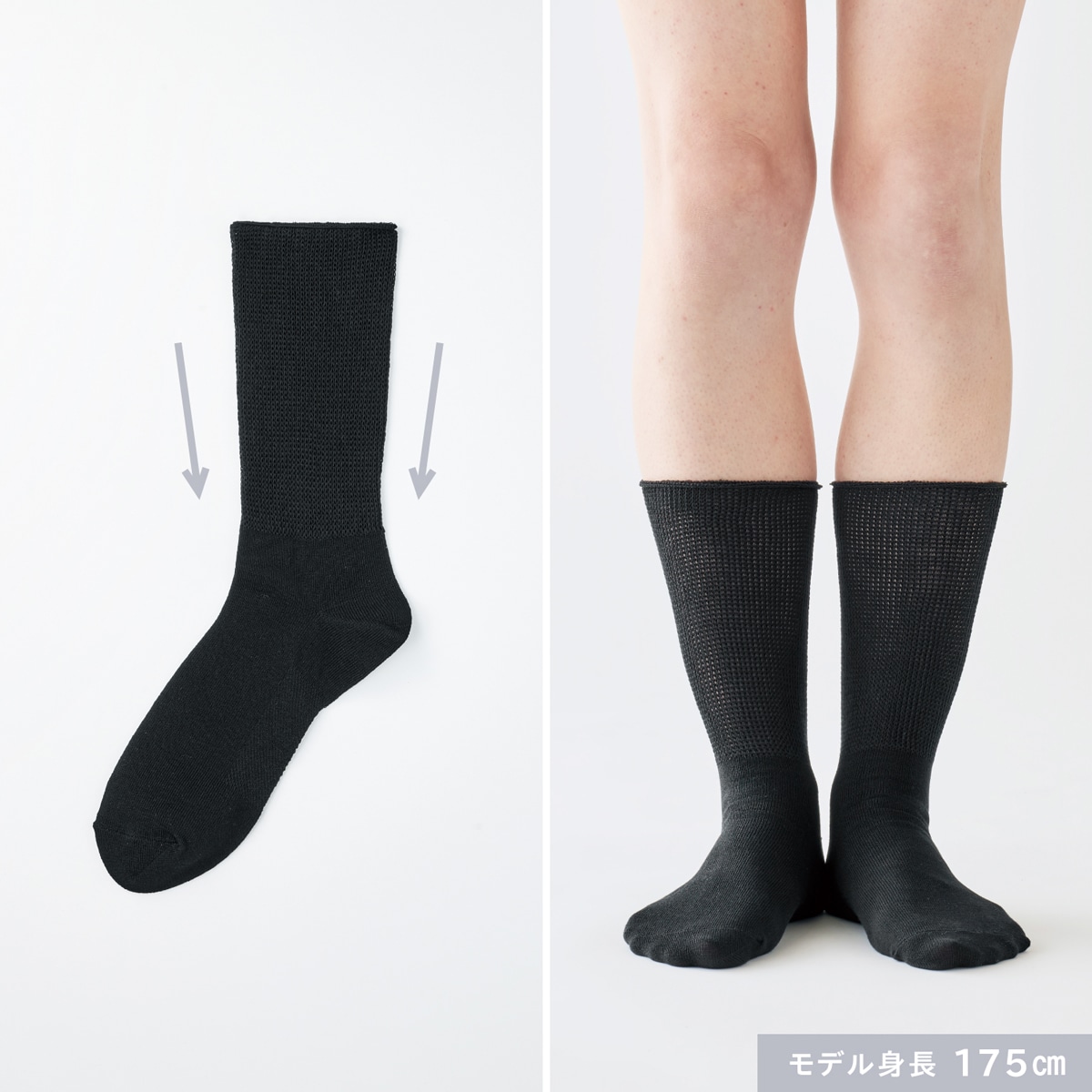 履き口から足首まで、締め付けずに足にフィットするテーパード編み